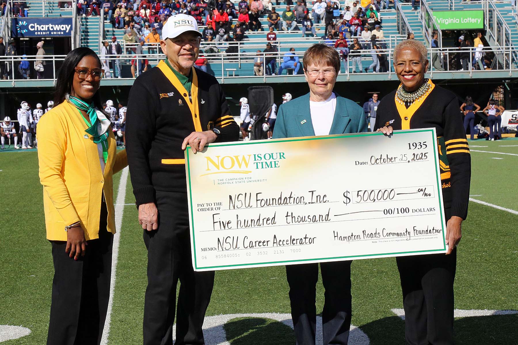 The Hampton Roads Community Foundation awarded $500,000 over five years to the Norfolk State University Foundation to provide direct career support services to students through the NSU Career Accelerator Program. The new initiative will be designed to provide direct support for career coaching, job placement services and certification support to ensure that students are fully prepared to enter the workforce with competitive skills, experiences and credentials.