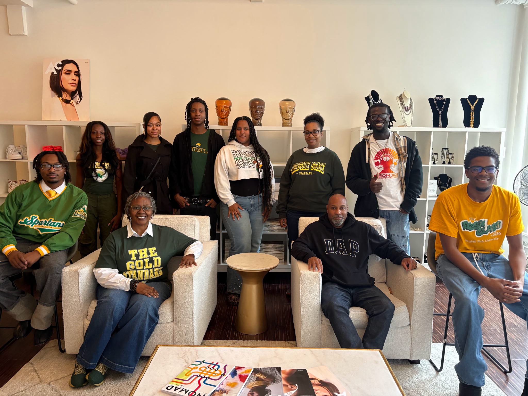 Students next met with Sean Williams, a sneaker industry specialist and consultant to Adidas, Puma and Nike, and members of the Accessory Council. "Mr. Williams discussed the need for more people of color in creative and decision-making positions at major sneaker companies," states Professor Frederick. "He wants to work directly with the students at Norfolk State University to provide knowledge and internships in the sneaker and accessory industries." During their time with Williams, students examined the collector's edition sneakers he told the story behind each product.
