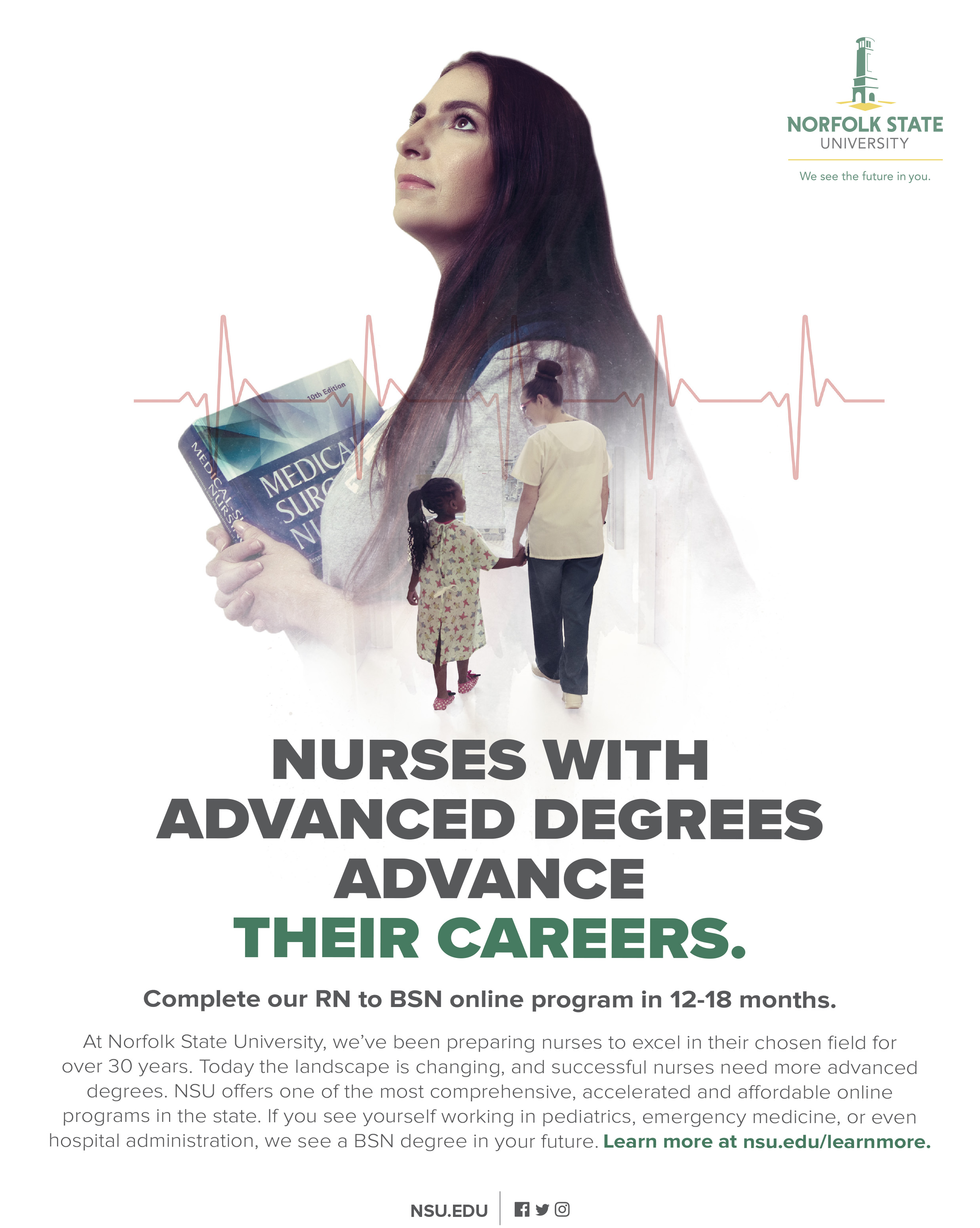 The campaign will be delivered to prospects and influencers in the state of VA through a full-funnel mix of media including radio, billboards, digital, social, and paid search that will drive traffic to nsu.edu where prospects can learn more and take the next step toward achieving their career dreams.